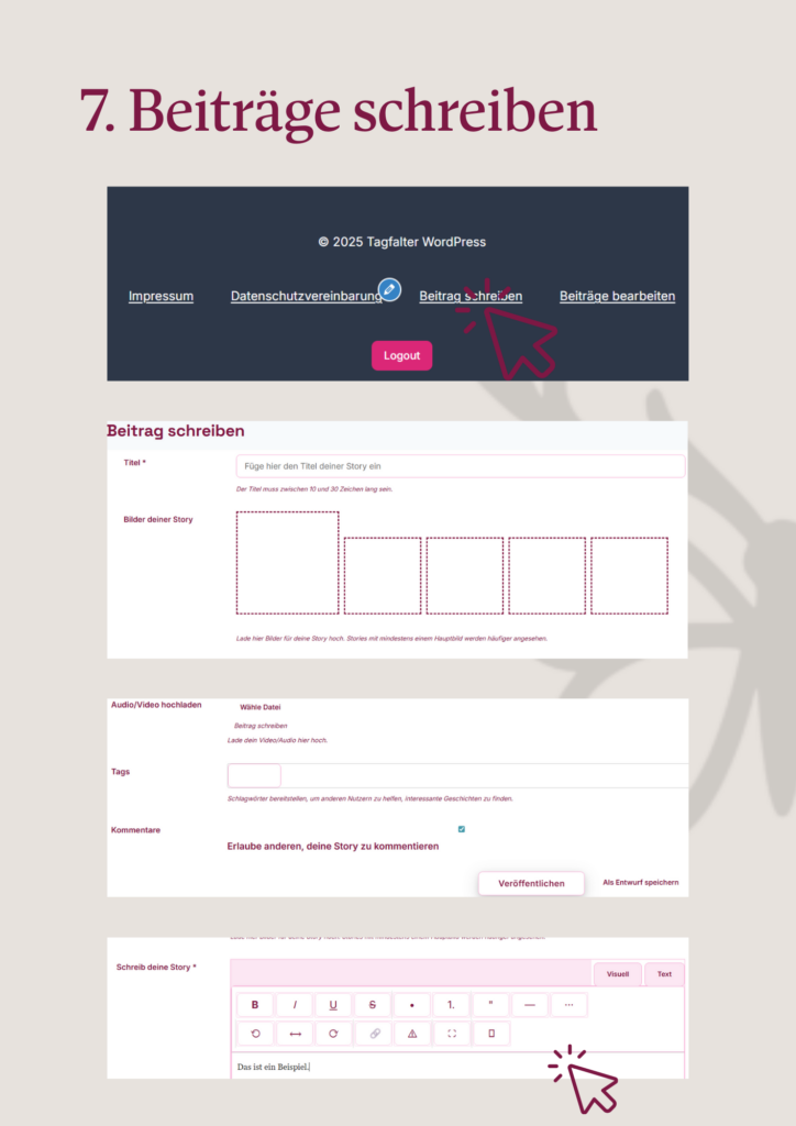 Mit der Funktion Beitrag schreiben kannst du eigene Inhalte wie News, Tipps oder Inspirationen direkt auf deiner Website veröffentlichen.